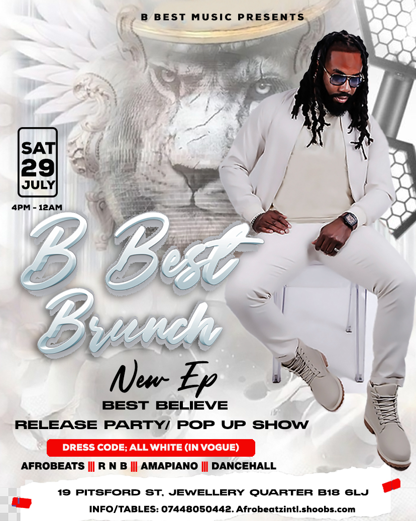 B Best Brunch ♨️ A day event / pop up show for the launch of the new body of work BEST BELIEVE by B Best ALL WHITE PARTY #BIRMINGHAM Day Party +Brunch Saturday 29Th July 2023 4pm ...