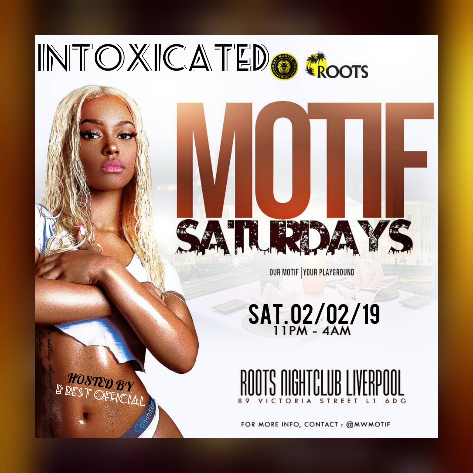 MOTIF #Liverpool Hosted: B Best SOMETHING NEW & DIFFERENT "MOTIF" INTOXICATED 02/02/19 ▫▪>>♚ #Motif | Sat 2ND January 2019 @ ******Roots Liverpool***** 89 Victoria St L1 6D...