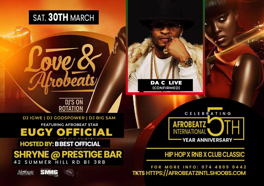 LOVE & AFROBEATS 2 FEATURING AFROBEATS SUPERSTAR EUGY OFFICIAL *LIVE IN BIRMINGHAM* PERFORMING HITS LIKE DANCE FOR ME & BODY FT MR EAZI 🌟Hip Hop x RnB🌟 An Exclusive V.I.P Saturday Ni...