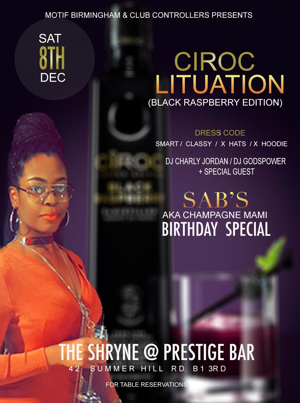 ♚ Ciroc Lituation ♚ [Black Raspberry Edition] An Exclusive V.I.P Saturday Night Rave For The Rich, Sassy & Classy Shryne V.I.P Saturdays Saturday 8th December FT. surprise guest appeara...
