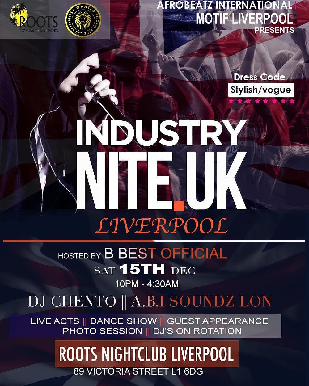 Afrobeatz International In Conjunction With Motif Liverpool Presents INDUSTRY NITE UK (Liverpool) SATURDAY 15TH DECEMBER ▫▪>>♚ #Motif @ ******Roots Liverpool***** 89 Victoria ...