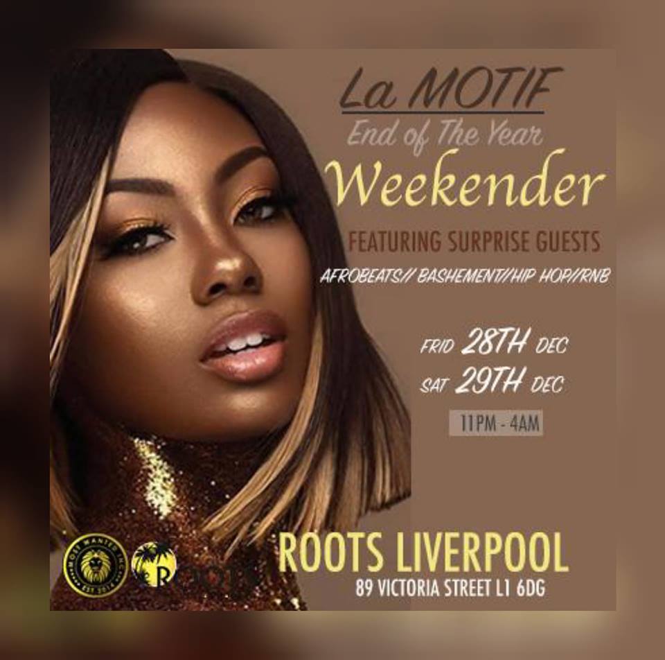 MOTIF LIVERPOOL PRESENTS La Motif END OF THE YEAR "WEEKENDER" Hosted by Most Wanted Motif Crew Ft Special Guests @Roots Liverpool Day 1: Fri. 28Th Dec Hosted By Afrobeats Superstar TillaMan Perfo...